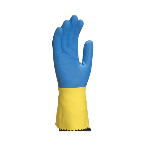 Перчатки водонепроницаемые, с хорошей устойчивостью к химикатам. Двойное покрытие продлевает срок службы перчатки и обеспечивает превосходную защиту руки. Рельефное покрытие из латекса обеспечивает отличный захват предметов при работах в маслянистой/жирной среде. Хлопковое напыление обеспечивает комфорт, хорошо впитывает пот. Подходят для работы в пищевой промышленности.