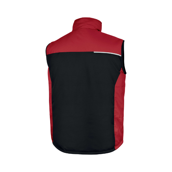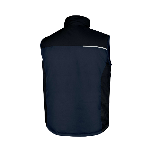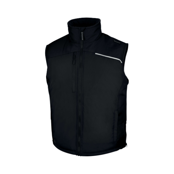 Утепленный жилет свободного кроя, с центральной застежкой-молнией, воротником-стойкой. Воротник изнутри отделан флисом. На передней нижней части жилета расположены 2 прорезных кармана с вертикальным входом на замке-молнии. В боковые швы низа жилета вшита замок-молния. Задняя часть жилета – удлиненная (на 8 см длиннее передней). Спереди и сзади жилета – светоотражающая полоса.
