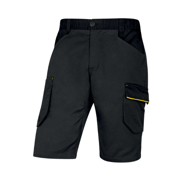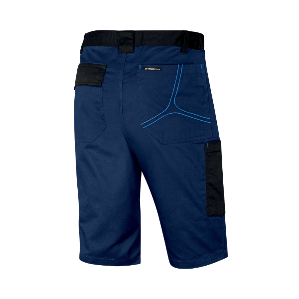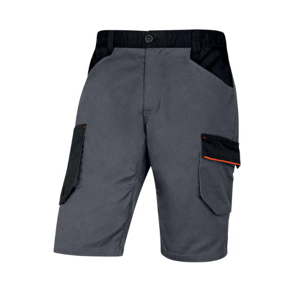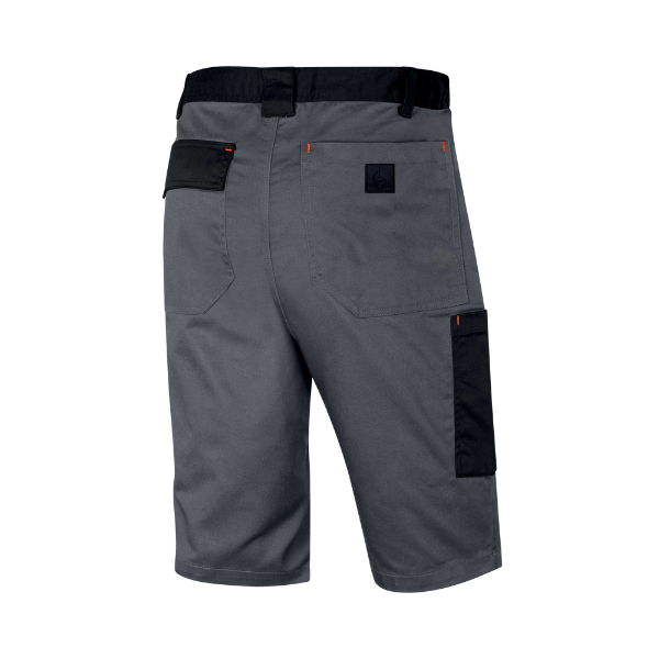 Шорты рабочие для защиты от общепроизводственных загрязнений и механических воздействий с застежкой на молнию и пуговицу. Шорты изготовлены из уникальной ткани саржевого переплетения, характерная особенность ткани – диагональный рубчик, за счёт этого достигаются хорошая износостойкость, после стирки цвета не тускнеют, не выцветает на солнце. Ткань обладает высокой воздухопроницаемостью. Шорты представлен в четырех цветах – сером с оранжевым, темно-сером, темно-сером с желтым, темно-синим со светло-синим. Шорты имеют контрастную отделку. Большое количество накладных и прорезных карманов – 7 карманов. Сзади расположены два накладных кармана. Левый карман с клапаном, застегивающимся на контактную ленту и правый карман с горизонтальным входом. На верхней части брюк расположены два прорезных боковых кармана. На левой штанине сбоку в области бедра расположен накладной карман с клапаном на контактной ленте, в котором имеется чехол для бейджа. На правой штанине расположены два накладных кармана, один из которых для измерительной линейки. Вставки по бокам из эластичной ленты для регулирования объёма по бёдрам. На поясе расположены шлевки для ношения с ремнем. Шорты прошиты тройными швами, что увеличивает их срок службы. Модель предназначена для любых направлений промышленности, логистической сферы, области строительства и сельского хозяйства, работников логистических или коммунальных служб. Шорты имеют продолжительный срок службы, их защитные свойства, форма и внешний вид не изменяются после многократных стирок и/или химчисток, что подтверждается гарантией производителя на 50 промышленных стирок.