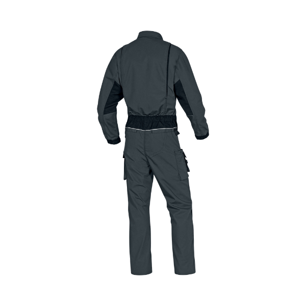 Комбинезон рабочий для защиты от общепроизводственных загрязнений и механических воздействий повышенной прочности с застежкой на двухсторонюю молнию с ветрозащитной планкой, застегивающуся на контактную ленту и пуговицы. Для производства серии MACH CORPORATE используется смесовая ткань с технологией RIP-STOP. Специфика этой ткани – в нее на равном расстоянии (5-8 мм) друг от друга крест-накрест вплетены нити усиления. В результате получается армированная ткань повышенной прочности, немнущаяся, нерастягивающаяся и не дающая усадки после намокания. Соответсвенно изделия, изготовленные из данной ткани, обладают наиболее высокими прочностными характеристиками, более высокой стойкостью к деформации и истиранию, влагостойкостью, влагу RIP-STOP не пропускает, после стирки сохнет очень быстро, более высокой воздохопроницаемостью за счет технологии плетения. Комбинезон представлен в серо-черном цвете. Комбинезон имеет контрастную отделку. Комбинезон прямого силуэта. Комбинезон прошит тройными швами, что увеличивает его срок службы. Большое количество накладных и прорезных карманов – 13 карманов. Сзади расположены два накладных кармана. На верхней части брюк расположены два прорезных боковых кармана. На верхней части комбинезона справа расположен карман с вертикальным входом, застегивающимся на молнию, в котором имеется чехол для бейджа. На грудной части слева расположен небольшой прорезной карман для карточки. На левой штанине сбоку в области бедра расположен накладной карман с клапаном на контактной ленте, разделенный на 2 части. На правой штанине сбоку расположен накладной карман, разделенный на 4 части – 1 карман для измерительной линейки, 1 карман для телефона, карман для ручки, держатели для инструмента. У комбинезона имеются усилительные накладки в области колен в виде карманов для наколенников. Усиливающая вставка в области промежности увеличивает срок эксплуатации изделия. Комбинезон имеет светоотражающие элементы – кант расположен сзади по линии пояса, спереди в области колен и в области груди на кокетке. Модель предназначена для любых направлений промышленности, логистической сферы, области строительства и сельского хозяйства, работников логистических или коммунальных служб. Комбинезон имеет продолжительный срок службы, его защитные свойства, форма и внешний вид не изменяются после многократных стирок и/или химчисток, что подтверждается гарантией производителя на 50 промышленных стирок.