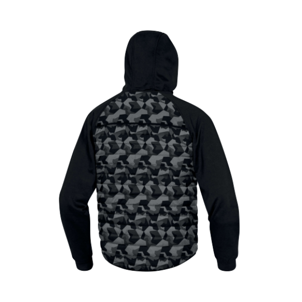 Куртка с центральной застежкой на молнию с внутренней ветрозащитной планкой. Куртка выполнена из комбинированных материалов: основная часть – из ткани Рипстоп с утеплителем, рукава и капюшон – трикотаж из полиэстера. Вшитый капюшон, длина лицевого выреза капюшона регулируется с помощью шнура и фиксаторов. Боковые прорезные и нагрудные карманы на молнии, внутренний карман. Манжеты из трикотажной резинки. Задняя часть куртки с удлиненным фигурным низом.