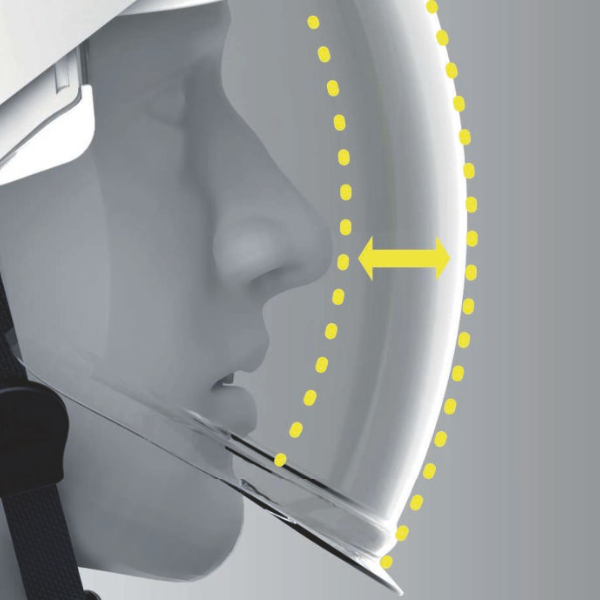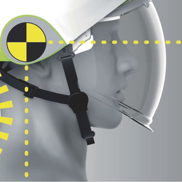 Каска защитная. Каска защитная состоит из двух соединенных между собой оболочек. Материал оболочек – АБС. Внутренняя оснастка из полиэстера: 3 текстильных ремня с 6 точками крепления. Плавная система регулировки охвата головы от 53 до 64 см при помощи системы затяжения One D-ROTOR®. Оголовье из полипропилена. Потовпитывающая вставка на лобовой части и подкладка сзади оголовья из вспененного полиуретана. В комплекте с каской идет подбородочный ремень с креплением к корпусу каски. Корпус из АБС-пластика – увеличение срока хранения (7 лет) и эксплуатации (4 года). Изменение высоты ношения каски на голове (два положения – нижнее или верхнее) для оптимального комфорта. Температурный режим эксплуатации: от -20°С до +50°С. Защита от боковых деформаций (LD) и брызг расплавленного металла (MM). Электрическая изоляция: 440 В переменного тока (согласно ТР ТС 019/2011) и 1000 В переменного тока и 1500 В постоянного тока (EN 50365, Class 0).