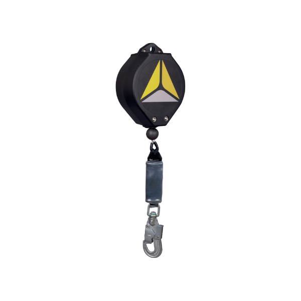 Средство защиты втягивающего типа с самоблокировкой, автоматическим средством натяжения и возврата втягивающегося стропа, с функцией спасательного подъемного устройства. Корпус из ударопрочного AБС-пластика (ABS). Втягивающийся строп – трос из оцинкованной стали: диаметр – 5 мм, длина – 30 м. Амортизатор встроен в тормозное устройство. 2 вертлюга. Самозапирающийся стальной карабин-крюк (класс Т, раскрытие 19 мм), вертлюг с индикатором срыва. Карабин для крепления к анкерному устройству поставляется отдельно. Удобная текстильная ручки для транспортировки. Съемная концевая ручка лебедки для легкой намотки троса. Устройство предназначено для использования как СЗВТ при факторе падения 0 при массе пользователя вместе с оборудованием до 150 кг (сертифицировано по EN). При применении как спасательного подъмного устройства масса пользователя вместе с оборудованием не должна превышать 100 кг. NFC-метка позволяет организовать учет на предприятии при наличии ПО и NFC-сканера